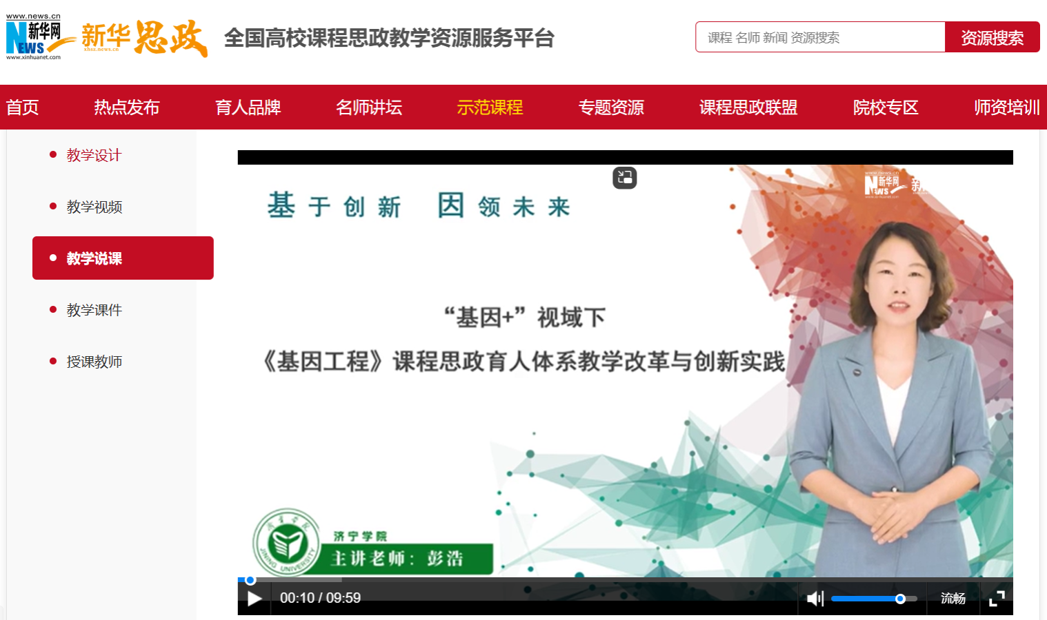 近日,我校生命科学与工程学院彭浩老师主讲的《基因工程》课程上线新华网“新华思政——全国高校课程思政教学资源服务”平台,标志着我校课程思政建设工作取得新的进展。