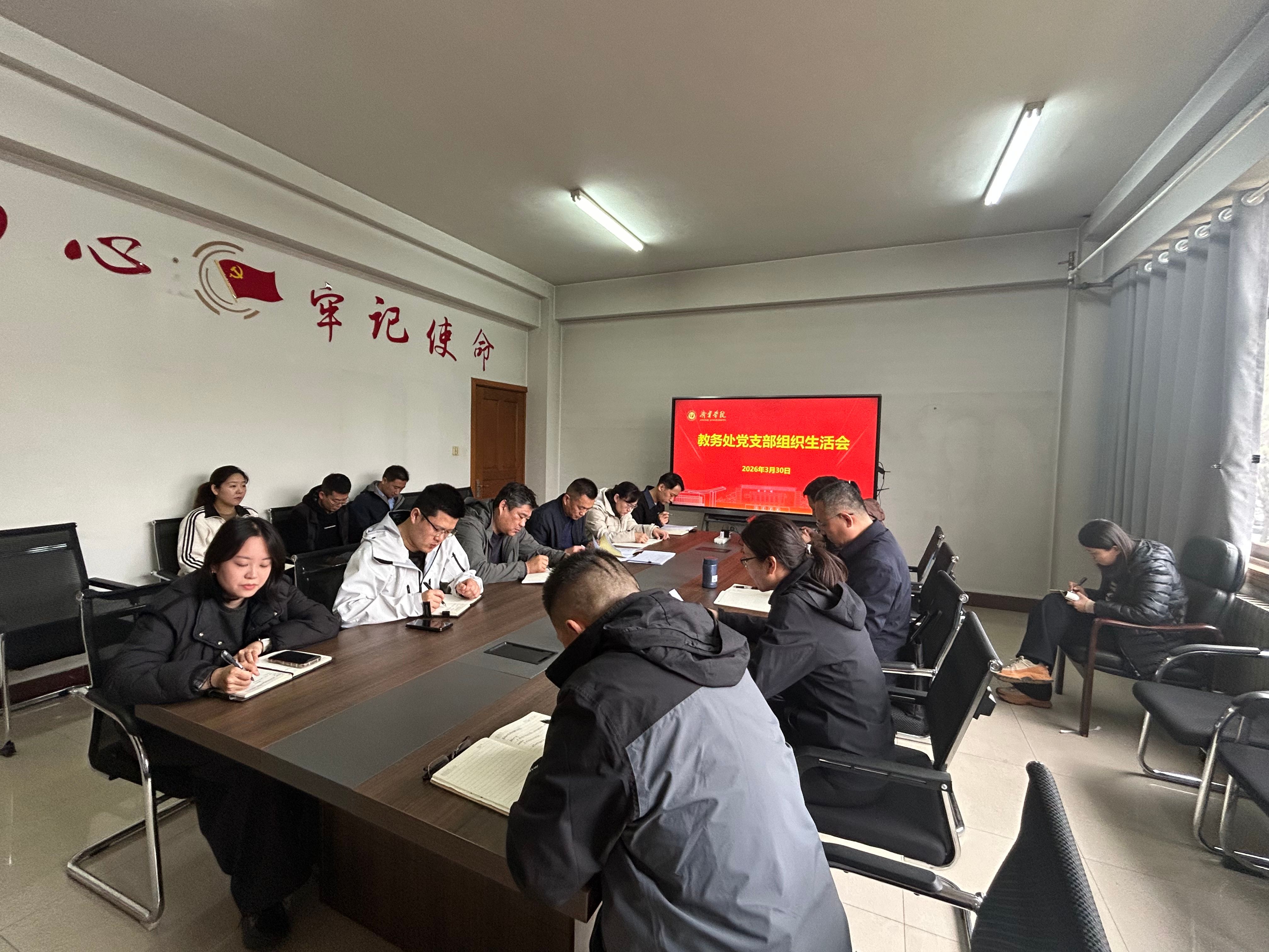 3月30日,教务处党支部在行政楼B202会议室召开2025年度组织生活会。机关党委委员、后勤处处长来维龙列席指导,党支部书记周珂主持,支部全体党员参加。